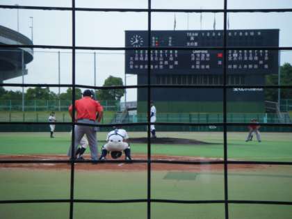 第一試合、市岡中学校VS阿倍野中学校の終了間際から、雨が降り出し本降りとなる中、対戦相手の巽中学校との予定試合開始時間が、40分ほど遅れてのプレーボール。最初は動きが硬いように見え、先に相手チームに先取点を許したことで目が覚めたのか、相手のミスも重なり一挙に逆転コールドゲームとなりました。