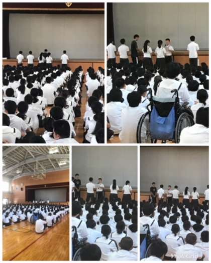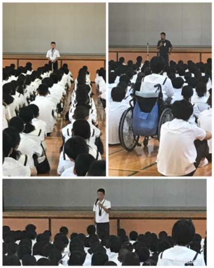 校長先生から、夏休みの全中大会で感じた厳しい状況(地震、豪雨被害)の地域から参加して来た選手の様子などを伝えてもらいました。もう一度それぞれの置かれている状況を見直してください。色々な方のサポートで今の自分があると言う話をしてもらいました。