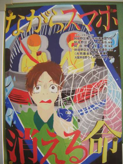 阿倍野区青少年指導連盟では、毎年、青少年の健全育成を主に、様々な関係団体のご後援をいただきながら、標語ポスターの原稿を区内小中学校から募集しています。