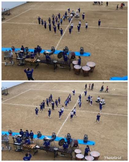 来月15日の埼玉スーパーアリーナで有るマーチングの全国大会に向かって寒さに負けずに、何度も何度も同じ動きを繰り返し繰り返しやってました。頑張れ吹奏楽部!全国に響かせ、文中サウンド!