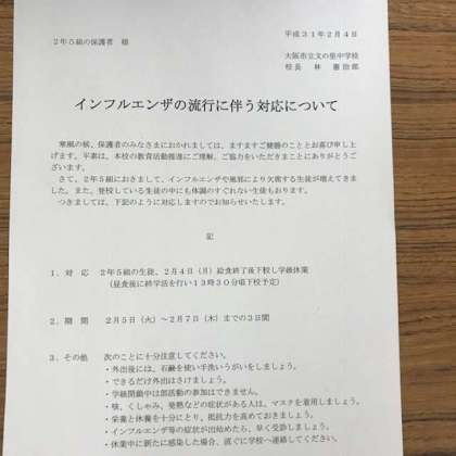 2年5組の学級閉鎖について