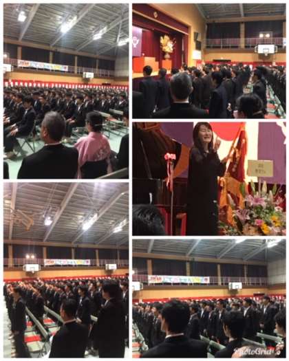 10時前に1組からの入場で式が始まりました。校歌斉唱の後、卒業証書の授与、学校長式辞、PTA会長祝辞、在校生代表送辞、卒業生代表答辞、卒業生の歌と、厳かな中にも温もりのこもった式が行われました。卒業生の歌は昨日のお別れ会にも増して素晴らしい歌声でした。三年生の先生方もその歌声で頬をつたうものがあったようです。卒業生おめでとう。