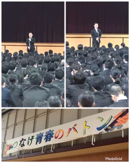 校長先生からは卒業した70期生から受けたチーム文の里のバトンを71、72期生がしっかり受け継いでください。そして73期生を迎えて3学年協力して卒業生に恥ずかしくないチーム文の里を作ってください。と話があり、その後、芝野先生の図書室からの連絡と正木先生からマリナーズのイチロー選手の若い人たちに話した目標を持ってください。という話を引用して目標を持つ事の大切さと、目標は今はなくても自分を追い込まず、色々な形で対応出来る人になってください。と話をされ修了式を終えました。