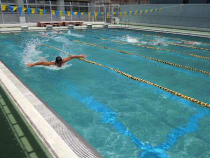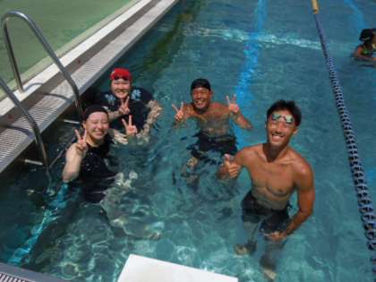 午前中、水泳部の練習ラストは部員5チームに先生チームを加えた6チームによるメドレーリーレーとフリーリレーが行われました。