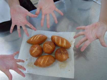 15〜20分程度発酵させたあとは、パンの形に整えます。