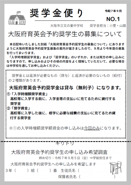 3年生には紙で配布していますのでご確認の上、希望調査の提出をよろしくお願いします。