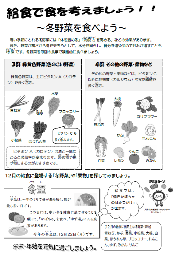 今回のテーマは「冬の食生活について考えよう!」「冬野菜を食べよう」です。