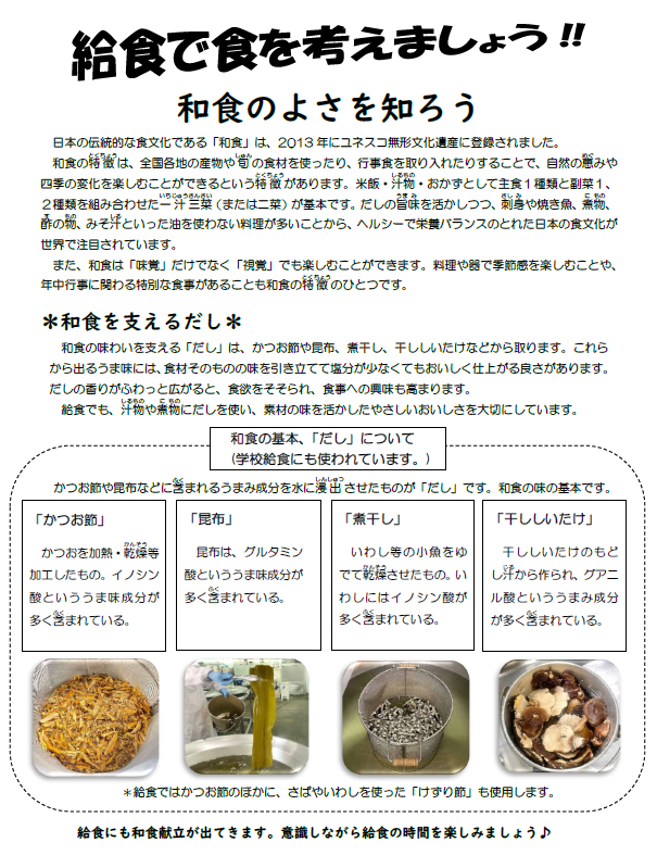 毎日の給食にも、健康な食事の知恵がたくさん詰まっています。
