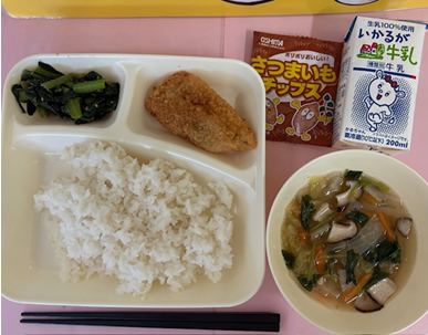 『たらフライ』は、外はカリッと香ばしく、中はふっくらと揚がり、生徒に大好評でした。おかわりの列ができ、残食も少ない1日になりました♪