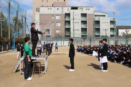 卓球部男子が、3月23、24日新潟県新潟市で開催された「第20回全国中学選抜卓球大会」において、予選を勝ち上がりベスト8になり、代表生徒に校長先生から表彰状が授与され、生徒全員から大きな拍手で祝福されました。おめでとうございます!