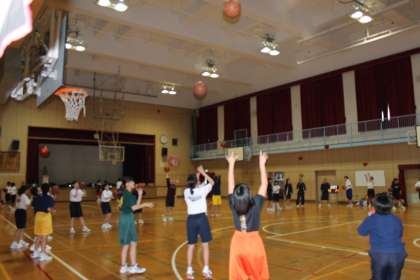 女子バスケットボール部では、真上へのパス練習をしていました。簡単そうに見えるけど難しいそうでした。