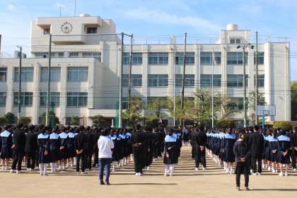 集会では、生徒指導主事の尾添先生から全校集会における整列の仕方等の詳しい説明がありました。