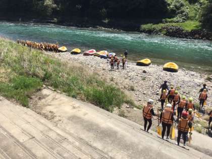 修学旅行二日目 犀川ラフティング いよいよ乗船