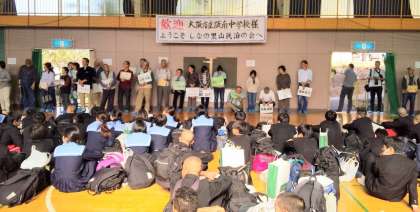 バスが交通事故の道路封鎖の影響で大きく迂回することなったため、篠ノ井村山健康スポーツセンターへ到着が大幅に遅れましたが、村をあげて大歓迎で入村式を行いました。