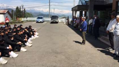 10時、5、6、7組の退村式が長野県大岡支所で行われました。写真は、受け入れ家庭ご代表の方からのご挨拶です。