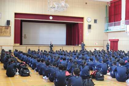 吉次教頭先生から一泊移住の出発にあたり、「時間を守る」「自分の役割を考え、仲間と協力し行動する」ことにより有意義な一泊移住になるよう取り組みましょうと、お話がありました。