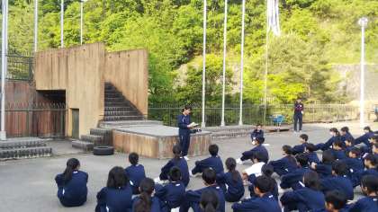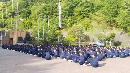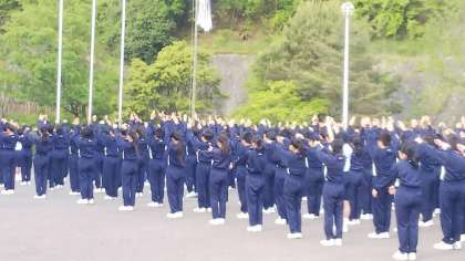 7時00分 爽やかな朝です。朝のあいさつ・ラジオ体操を行いました。