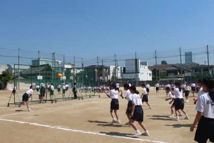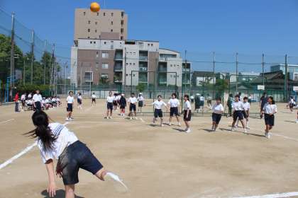 球技大会の種目は「ドッジボール」です。汗ばむ暑さの中、熱戦が繰り広げられました。ボールに当たるまいと、土まみれになっている生徒もいました。