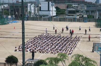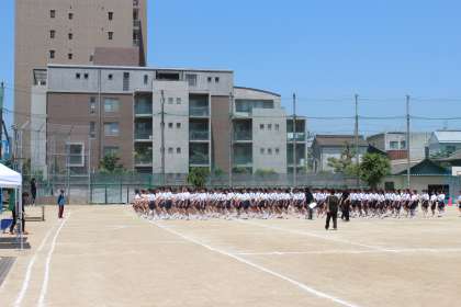 1年生は、初めての体育大会の練習でしたが、カラッとした暑さの中、みんながんばっていました!