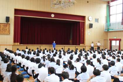 集会では、大庭先生から明後日は体育大会、明日は最後の練習がありますが、演技を成功させるために、我慢しなければいけない部分は我慢することと、自分と周りの人のために行動できているかに気をつけて、みんなで協力し良い体育大会にしましょうと、お話がありました。