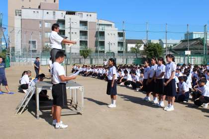 「第69回社会を明るくする運動」作文コンテストで、優秀作文に選ばれたTさんが、全校集会で表彰され生徒全員から大きな拍手で祝福されました。おめでとうございます。