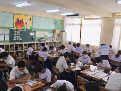 合唱練習は3回目とあって、自分たちで練習を進めることができています。文化発表会で展示するステンドグラス制作は、まだ完成のイメージがわかない中での作業です。先生や文化委員の説明を聞いて、丁寧にと作業しています。完成が楽しみですね。