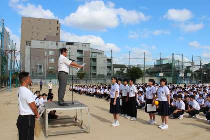 合唱部が、8月25日(日)貝塚市コスモシアター大ホールで開催された2019年度大阪府合唱コンクールで、合唱曲「僕が守る」を発表し見事金賞を受賞し、全校集会で校長先生から代表生徒に表彰状が授与され、生徒全員から大きな拍手で祝福されました。おめでとうございます!