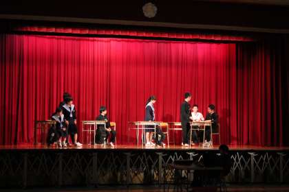 生徒会のメンバーを中心に、ショートストーリーと本編の2本立ての演劇です。台本は、尾添先生と2年Nさんがつくってくれました。文化発表会が近づき、ますます練習に熱が入ってきました。上演が待ち遠しいです!