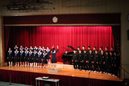 舞台発表部プログラム1番、合唱コンクール最優秀クラスが学年を代表して、歌ってくれました。