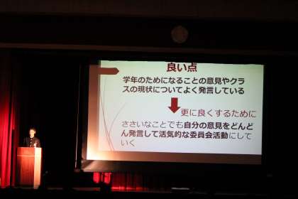 2年生の学年目標である「自ら考え行動する集団」「連帯意識を高める集団」になるために何をすることが必要なのを考え、マッピングを作成して発表しました。