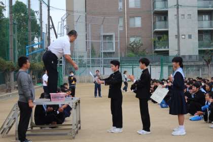 さわやかな学校づくりに貢献してくれた3年Sくん、Kくんに「さわやか賞」を送られました。ありがとう!全校生徒から大きな拍手が送られました。