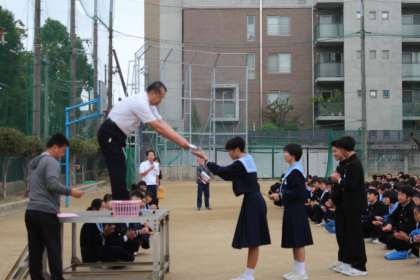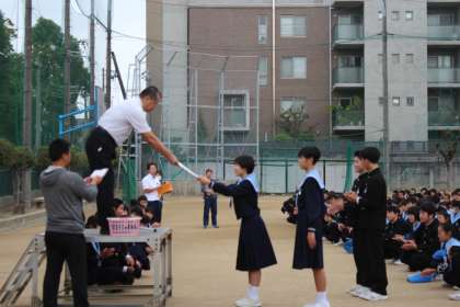 10月21日(月)朝、全校集会で、女子バスケットボールが9月28日(土)に東淀川体育館で開催された大阪市秋季総合体育大会で第3位となり、副校長先生から表彰状が授与され、全校生徒から大きな拍手で祝福されました。おめでとうございます!