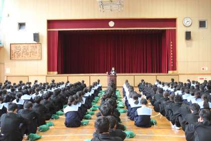 「働く」ことは、「自分のため」であり、巡りめぐって「世の中の人のため」でもあるという話を、生徒たちは真剣に聞いていました。