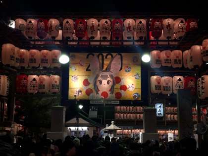 以前にもお知らせしましたが、今宮戎神社境内本殿東門に美術部が制作した「YO・RO・KO・BI」が掲示されていますので、ぜひご覧ください。