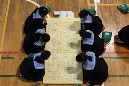 2年生は、上の句の読み始めた途端に素早く手が伸びてきます。その速さに殺気を感じるグループもありました。
