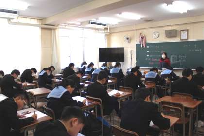 1月31日(金)、3年生にとっては、中学校で受ける最後のテストでした。私学・公立受験に向けて、充実した毎日を過ごしているのでしょう。3年生の緊張感は、1、2年生を圧倒していました。