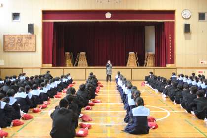 2月14日(金)朝、1年学年集会を行いました。