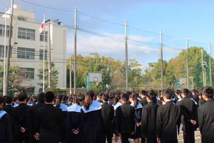 集会では、校長先生から寒い日が続いていますが、新型コロナウィルスの感染が広がっています。通勤の阪堺電車の車内で、何度も咳きこむ人がいました。周りの人は嫌そうな顔をしていました。みなさん、体調の悪い時は周りの人を気遣い、マスクを着用しましょう。インフルエンザも流行しています。お互いに気をつけましょうと、お話がありました。
