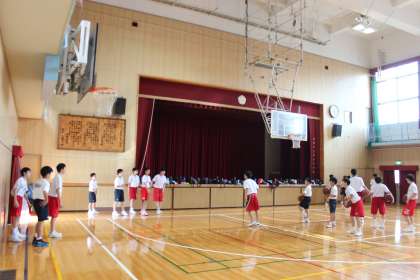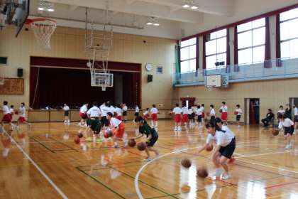 上段 女子バスケットボール部は、ドリブル練習、パスを受けてシュート練習をしました。