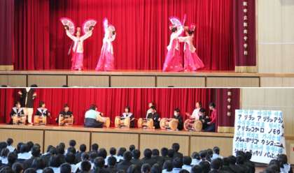 3年生は、1限に体育館でPTA人権講演会「韓国朝鮮の文化にふれよう〜共に生きる〜」を保護者の方々と一緒に鑑賞しました。プチェチュムの踊りやカヤグム、サムルノリの演奏がありました。また、チャングやノルティギの体験などもあり、隣の国の文化にふれ・感じることができた時間となったことと思います。