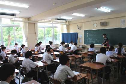 《写真 上段は3年4組、下段は3年5組です》
