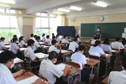 社会のテスト問題、解答用紙が配られ、開始チャイムを待つばかりです。
