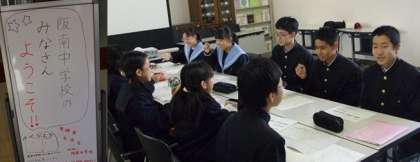 それぞれが自己紹介を行った後、各校からの活動を報告しました。阪南中からは、日々生徒会が中心に学校で行っている取り組みを、映像とともに報告しました。その後、お互いに質問を出し合い、生徒たちも大きな刺激を受けていました。