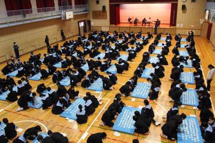 12月24日(水)1限から体育館で、2年生の百人一首大会を行いました。例年、初春の風物詩として1月に行っていましたが、今年度は年明けの体育館工事の関係で、今回の日程での開催となりました。