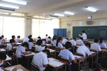 9月16日(水)中間テスト2日目、社会、英語、数学のテストを実施しました。