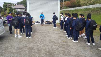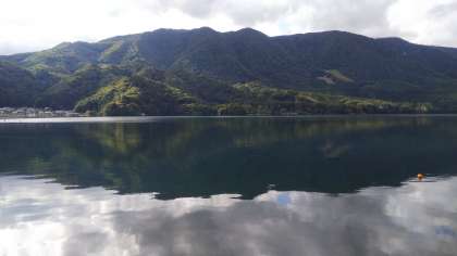 SUP、カヌー体験希望者を乗せたバスが、青木湖に到着しました。