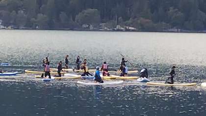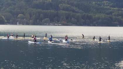 SUPとは「Stand Up Paddleboard(スタンドアップパドルボード)」の略称。その名の通り、ボードの上に立ち、パドルを漕いで水面を進んでいく新感覚のアクティビティです。