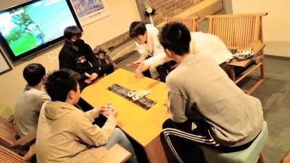 ペンションに着き、リッチなロビーでウノを楽しんでいます。