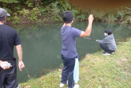 ちょっと食いが渋い中ようやく釣り上げたニジマス!うれしさもひとしおです。