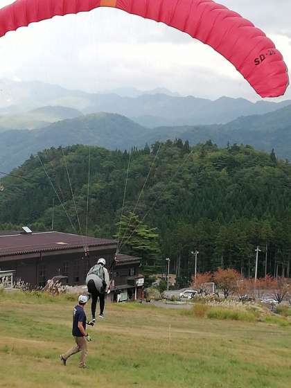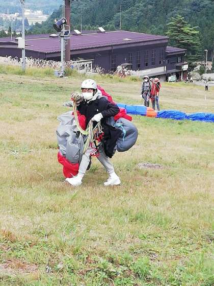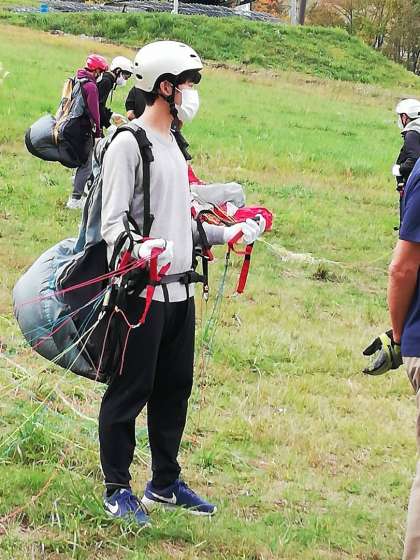 パラグライダーの様子です。飛び立つ前は、誰もが緊張しています。